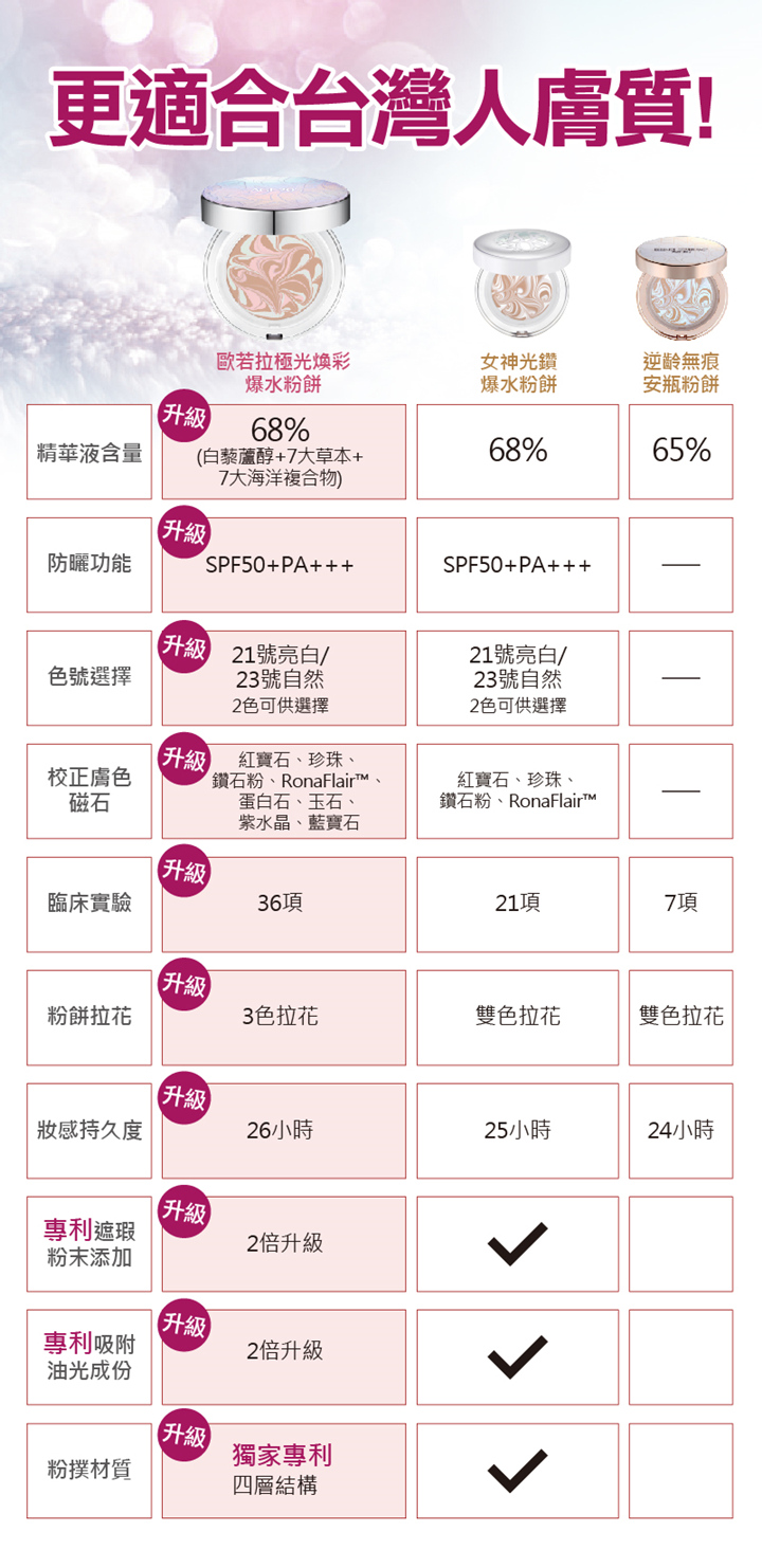 歐若拉極光爆水粉餅還通過了36項臨床效果,