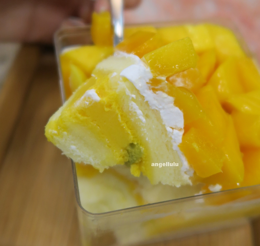 因為採用新鮮的愛文芒果,夏天正是芒果的季節,整個蛋糕的甜度就用芒果天然的香甜給襯托出來~~