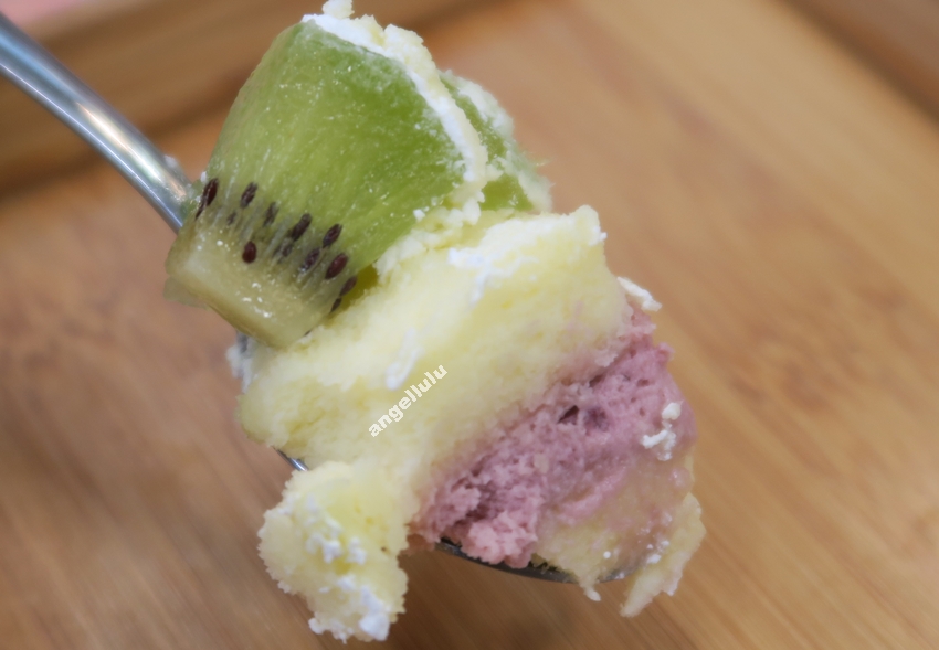 在蛋糕體中加了優格增加濕潤度,跟一般乾乾的海綿蛋糕體口感很不一樣~